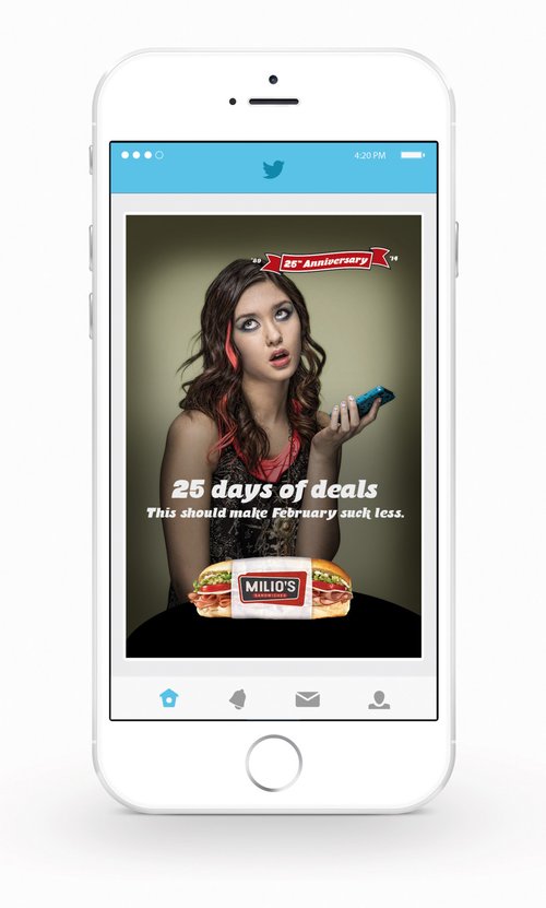 25 years of loyalty, why not give a little back. Known for lifting anyone’s spirit with a great sandwich, Milio’s Sandwiches ran a limited offer campaign with a print and social campaign.